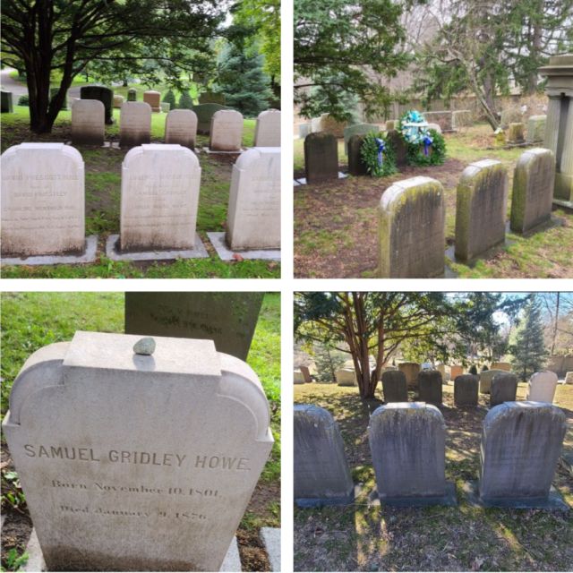 »Δεξιά τα μνήματα τον περασμένο Μάρτιο, όπου συντηρημένο ήταν μόνο το μνήμα της σουφραζέτας ποιήτριας και συζύγου του Samuel Howe, της Julia Ward Howe, η οποία είναι γνωστή εδώ σε όλους ως η συνθέτρια του εμβατηρίου “The Battle Hymn of the Republic”.