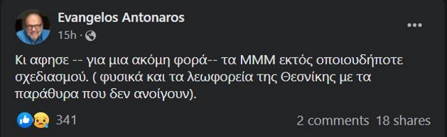 Κι αφησε — για μια ακόμη φορά– τα ΜΜΜ εκτός οποιουδήποτε σχεδιασμού. ( φυσικά και τα λεωφορεία της Θεσνίκης με τα παράθυρα που δεν ανοίγουν).