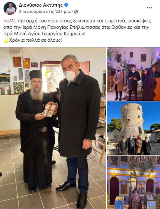 Σε δυο μοναστήρια με αντιεμβολιαστές μοναχούς επέλεξε να περάσει την πρώτη Κυριακή του χρόνου ο βουλευτής Ζακύνθου της ΝΔ, Διονύσης Ακτύπης, σύμφωνα αναρτήσεις του στα μέσα κοινωνικής δικτύωσης.