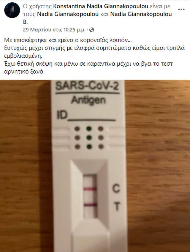 »Ευτυχώς μέχρι στιγμής με ελαφρά συμπτώματα καθώς είμαι τριπλά εμβολιασμένη.