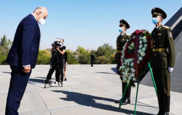Η ανάρτηση συνοδεύεται από φωτογραφία της επίσκεψης του Νίκου Δένδια, τον Οκτώβριο του 2020, στο μνημείο της Γενοκτονίας στο Ερεβάν της Αρμενίας.