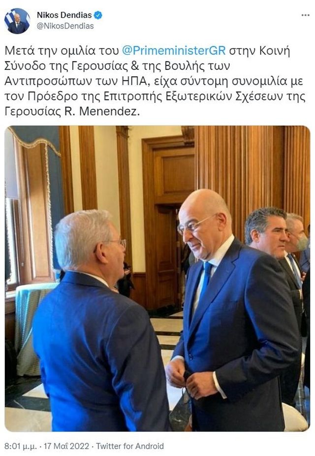 Δήλωση Υπουργού Εξωτερικών, Νίκου Δένδια σε Έλληνες δημοσιογράφους μετά το πέρας των επαφών του στις ΗΠΑ (Ουάσιγκτων, 17.05.2022)