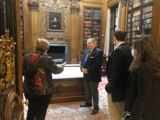 Στο πλαίσιο της ανάδειξης του πολύτιμου πολιτιστικού κεφαλαίου της Νεοελληνικής Γραμματείας και της ελληνικής γλώσσας, ο κ. Χρυσουλάκης επισκέφθηκε στο Πανεπιστήμιο Harvard την περίφημη Βιβλιοθήκη Widener, η οποία διαθέτει τη μεγαλύτερη συλλογή Νεοελληνικής Γραμματείας στον κόσμο.