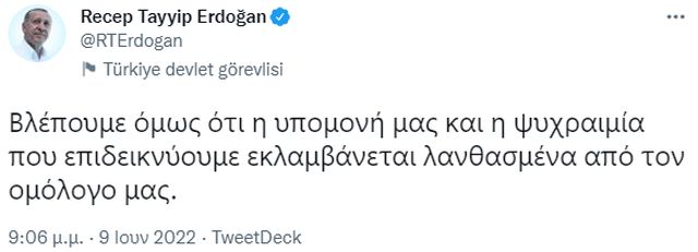 — Recep Tayyip Erdoğan (@RTErdogan) June 9, 2022