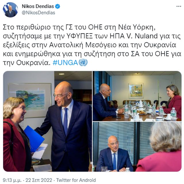 Διαβάστε σχετικά για Βικτόρια Νούλαντ, Ηνωμένες Πολιτείες Αμερικής (ΗΠΑ), Νίκος Δένδιας, Οργανισμός Ηνωμένων Εθνών (ΟΗΕ), Στέιτ Ντιπάρτμεντ, Υπουργείο Εξωτερικών,