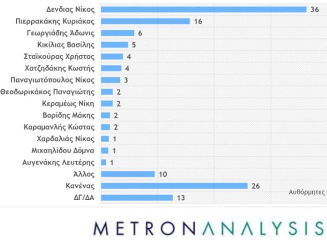 Όπως σημειώνει η εταιρεία Metron Analysis, πρόκειται για αυθόρμητες αναφορές στο ερώτημα «ποιον θεωρείτε μέχρι τώρα καλύτερο υπουργό της Κυβέρνησης; και ποιον άλλον;».