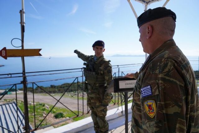 Ο Φλώρος επιθεώρησε τα ελληνικά στρατεύματα στο νησί, όπου απαγορεύονται οι εποικισμοί και η ανάπτυξη στρατευμάτων, τονίζεται.