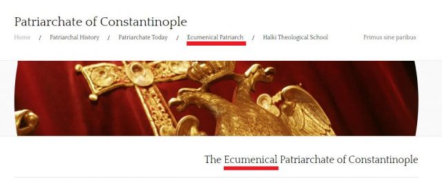 Εξάλλου και το ίδιο το Πατριαρχείο, στην επίσημη ιστοσελίδα του, αναφέρει τον τίτλο του ως «The Ecumenical Patriarchate of Constantinople».