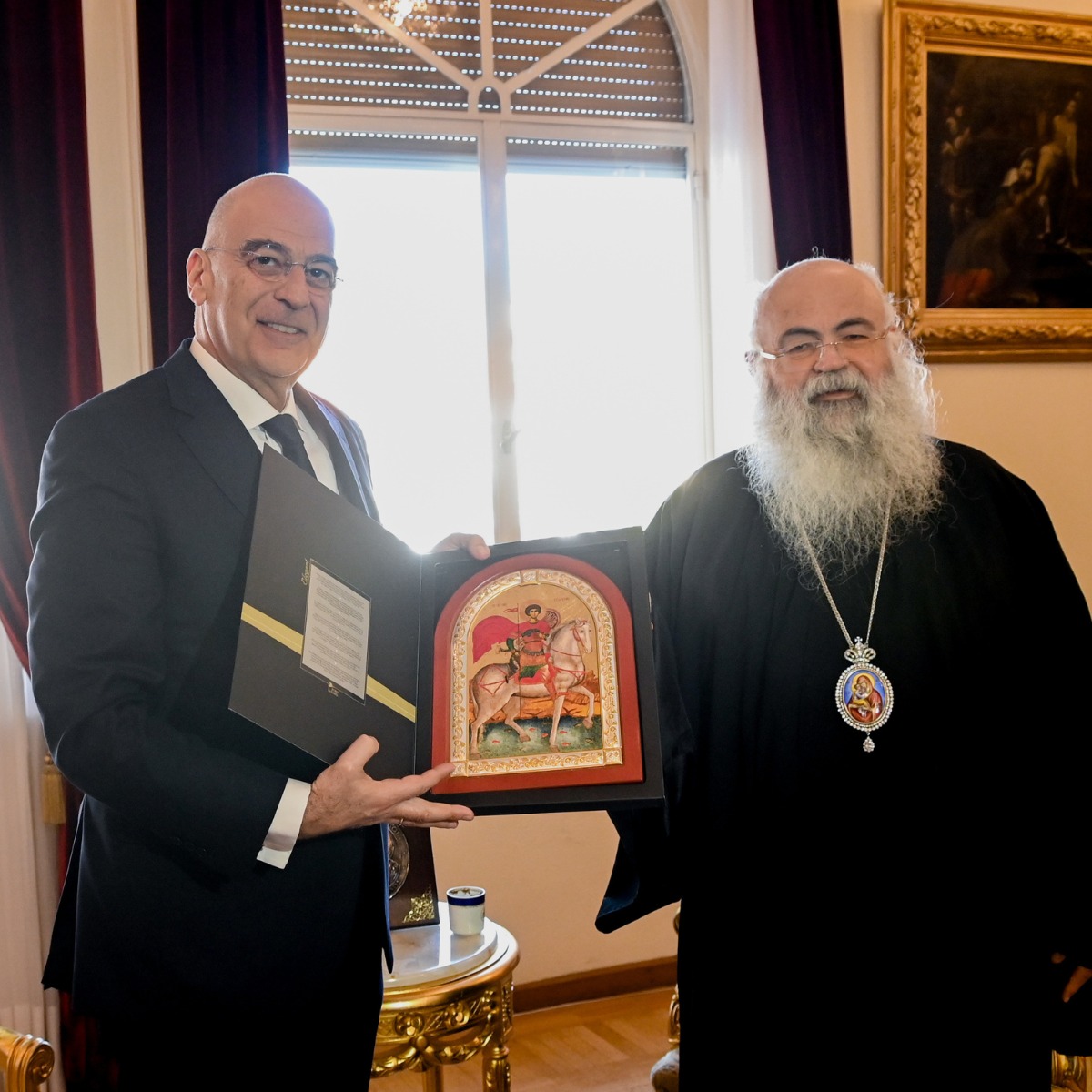 »Τέλος, έγινα δεκτός από τον Μακαριώτατο Αρχιεπίσκοπο Νέας Ιουστινιανής και πάσης Κύπρου κ.κ. Γεώργιο», έγραψε ο Νίκος Δένδιας.