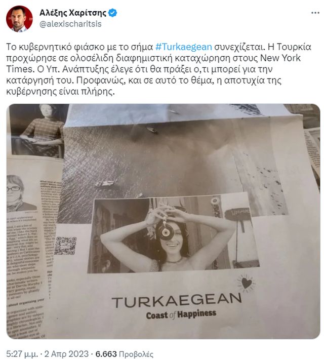 «Το κυβερνητικό φιάσκο με το σήμα Turkaegean συνεχίζεται.