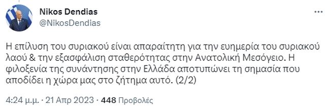 — Nikos Dendias (@NikosDendias) April 21, 2023