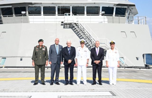 O υπουργός Εθνικής Άμυνας, κ. Νίκος Δένδιας, συνοδευόμενος από τον Αρχηγό ΓΕΕΘΑ Στρατηγό Κωνσταντίνο Φλώρο και τον Αρχηγό ΓΕΝ Αντιναύαρχο Ιωάννη Δρυμούση ΠΝ, παρέστη σήμερα, Δευτέρα 9 Οκτώβριου 2023, στην τελετή υπογραφής της παράδοσης του Πλοίου Γενικής Υποστήριξης «ΠΕΡΣΕΑΣ» στη δύναμη του Πολεμικού Ναυτικού, η οποία πραγματοποιήθηκε στις εγκαταστάσεις του Ναυστάθμου Σαλαμίνος.