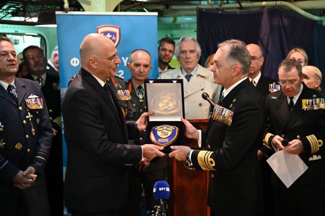 Κατά την επίδοση αναμνηστικού δώρου στον Αρχηγό ΓΕΝ και παραδίδοντα Αρχηγό Στόλου, στην τελετή που έγινε στη Φρεγάτα «Ύδρα», ο κ. Δένδιας ανέφερε: