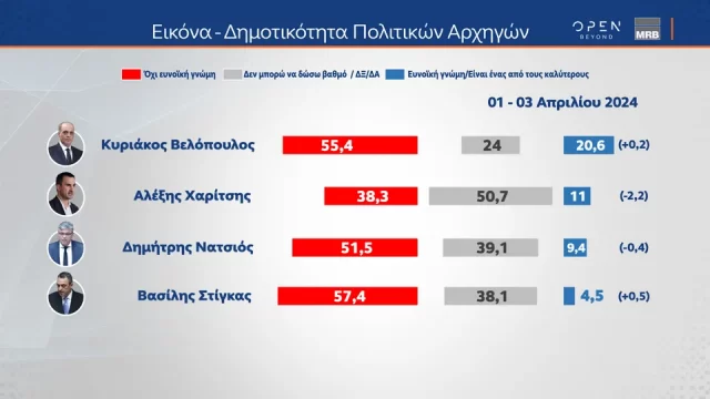 Προσωπικό πλήγμα για τον Κυριάκο Μητσοτάκη και ανώμαλη προσγείωση για τη Νέα Δημοκρατία στο δρόμο προς τις ευρωεκλογές, αποτελούν τα ευρήματα της δημοσκόπησης της MRB για το OPEN, το δεύτερο μέρος της οποίας παρουσιάστηκε σήμερα στο κεντρικό δελτίο ειδήσεων του σταθμού.