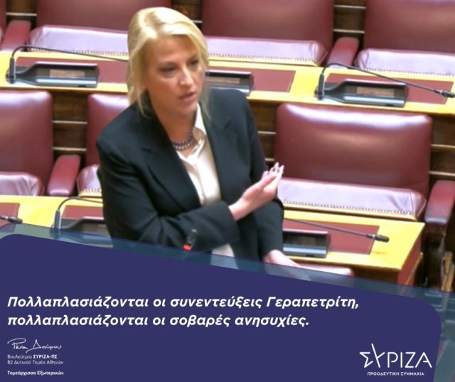 «Τη μια μετά την άλλη παραχωρεί τις συνεντεύξεις ο κ. Γεραπετρίτης, ενόψει της επικείμενης συνάντησής του με τον Τούρκο ομόλογό του, κ. Φιντάν», αναφέρει στο «Χ» (πρώην Twitter) με καυστικό ύφος η τομεάρχης Εξωτερικών του ΣΥΡΙΖΑ Προοδευτική Συμμαχία, Ρένα Δούρου και συνεχίζει έντονα: