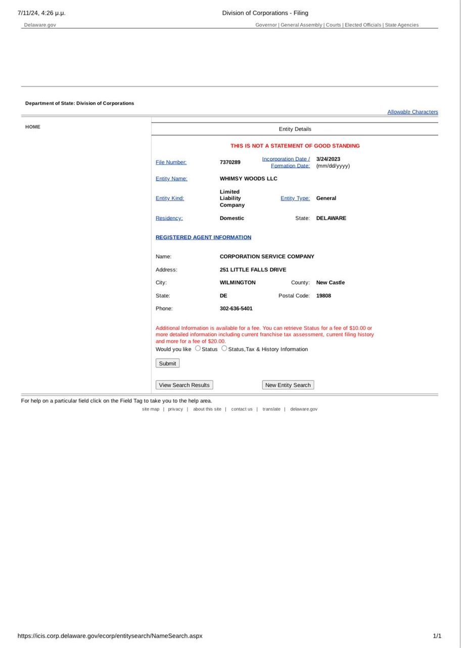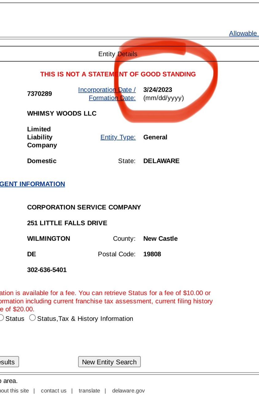 Επίσης, αυτή η εταιρεία στην επόμενη εικόνα είναι αυτή που ίδρυσε τον Μάρτιο του 2023 στο Ντελαγουεάρ, όπου εκεί έβαλε το σπίτι που αγόρασε στην Αμερική (έπρεπε κι αυτή να τη δηλώσει!!).
