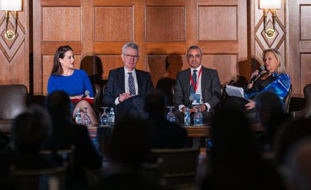 Από αριστερά: Αντιγόνη Βαφείδου, Υποδιευθύντρια Διεύθυνσης Κανονιστικής Συμμόρφωσης του Διαχειριστή Ελληνικού Δικτύου Διανομής Ηλεκτρικής Ενέργειας (ΔΕΔΔΗΕ) – Geoffrey Pyatt, Yφυπουργός Εξωτερικών των ΗΠΑ για τους ενεργειακούς πόρους (2022-2025) – Osama Mobarez, Γενικός Γραμματέας, East Mediterranean Gas Forum, Arab Republic of Egypt – Βίβιαν Μπουζάλη, Chief Corporate Affairs & Communications Officer, Metlen Energy & Metals.