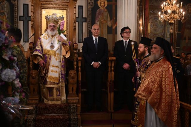 Στη συνέχεια, ο Υπουργός Εθνικής Άμυνας μετέβη στην Ορεστιάδα, όπου παρακολούθησε στον Ιερό Μητροπολικό Ναό Αγίων Θεοδώρων την Ακολουθία του Επιταφίου Θρήνου, στην οποία χοροστάτησε ο Σεβασμιώτατος Μητροπολίτης Διδυμοτείχου, Ορεστιάδος και Σουφλίου, κ.κ. Δαμασκηνός, καθώς και την περιφορά του Επιταφίου.