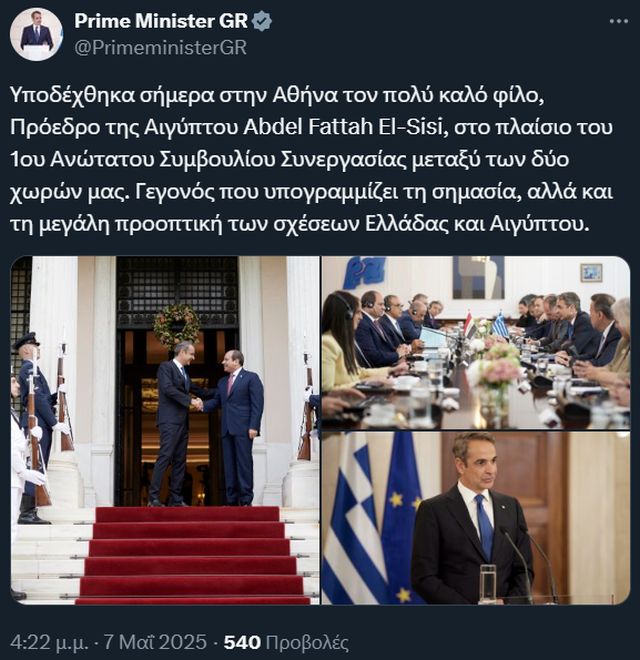 Με αυτή τη φράση, ο Αλ Σίσι επισημοποιεί όχι μόνο μια πολιτική συμμαχία, αλλά ένα κοινό πεπρωμένο – με ρίζες στο Νείλο και τον Αιγαίο, με καρδιά στην Ανατολή και βλέμμα στη Δύση.