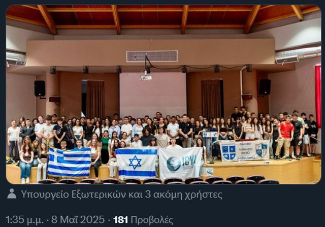 Η ανάρτηση καταλήγει χαρακτηρίζοντας την εκδήλωση ως μια αληθινή γιορτή ελληνοϊσραηλινής φιλίας που φέρνει κοντά τους νέους των δύο χωρών.