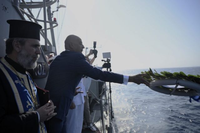 Ακολούθησε η επιμνημόσυνη δέηση για τους πεσόντες και η ρίψη στεφάνων από τον Υπουργό Εθνικής Άμυνας και τον Αρχηγό ΓΕΝ. Στο σημείο που έπλευσε η ΤΠΚ «ΜΥΚΟΝΙΟΣ» ναυλοχεί τιμητικά το Α/Γ «ΣΑΜΟΣ».