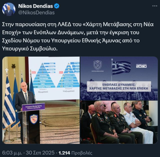 ✔ Εθελοντική Στράτευση… pic.twitter.com/IBVHWYI9JR— Nikos Dendias (@NikosDendias) September 30, 2025