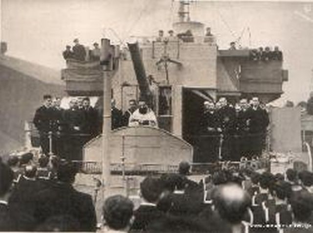 Έπαρση σημαίας στην κορβέτα «Κριεζής» τον Νοέμβριο του 1943 στο Λίβερπουλ. ΦΩΤΟ: Αρχείο Ναυάρχου Γρ. Μεζεβίρη Β.Ν