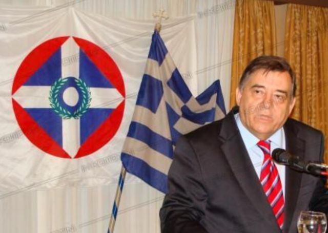 Αριστερά στη φωτογραφία βλέπετε το κυκλικό «έμβλημα» του ΛΑΟΣ, καραμπινάτη παραποίηση και καπήλευση εθνικού συμβόλου. Τότε, με τους φασίστες που πολιτευόταν, ο Άδωνις Γεωργιάδης δεν είχε πρόβλημα με αυτή την ξεφτίλα;