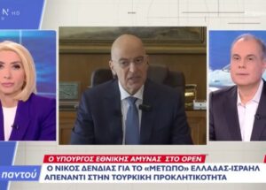 Σε συνέντευξη που παραχώρησε την Πέμπτη, 22 Ιανουαρίου 2026, στον τηλεοπτικό σταθμό OPEN και στους δημοσιογράφους Νίκο Στραβελάκη και Μίνα Καραμήτρου, ο Υπουργός Εθνικής Άμυνας, Νίκος Δένδιας, αποσαφήνισε τις πάγιες θέσεις της ελληνικής εξωτερικής πολιτικής αναφορικά με τα κυριαρχικά δικαιώματα της χώρας και τις σχέσεις με τη γείτονα.