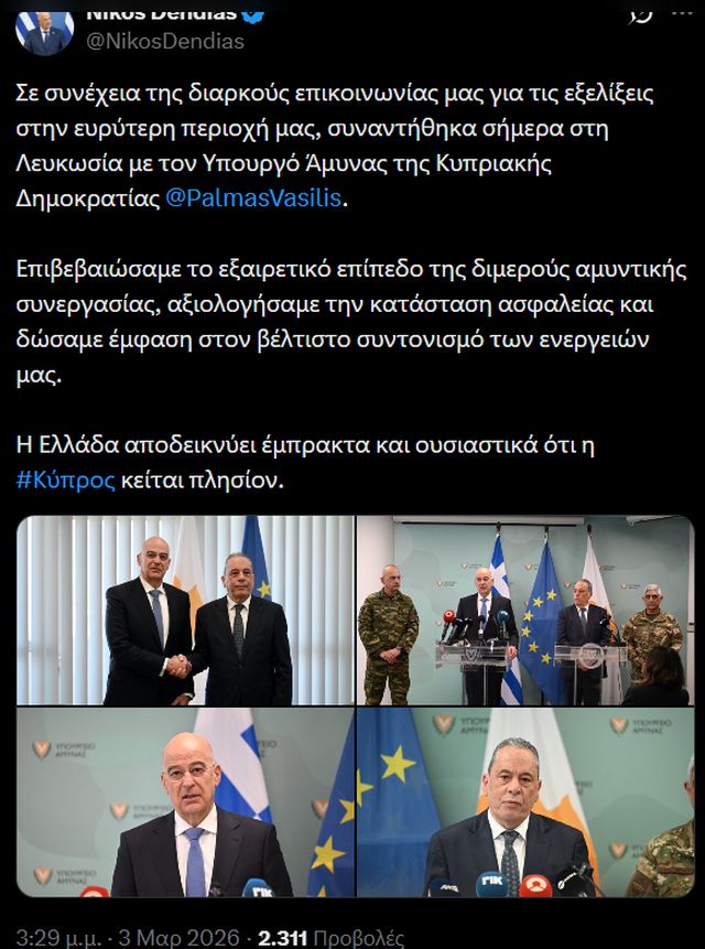 — Nikos Dendias (@NikosDendias) March 3, 2026