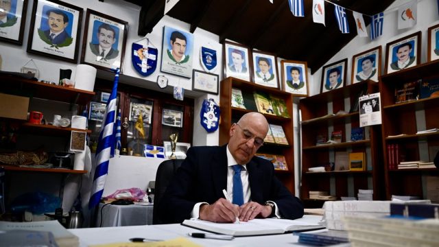 Ο Νίκος Δένδιας απέτισε φόρο τιμής στον Γρηγόρη Αυξεντίου και στα «Φυλακισμένα Μνήματα»