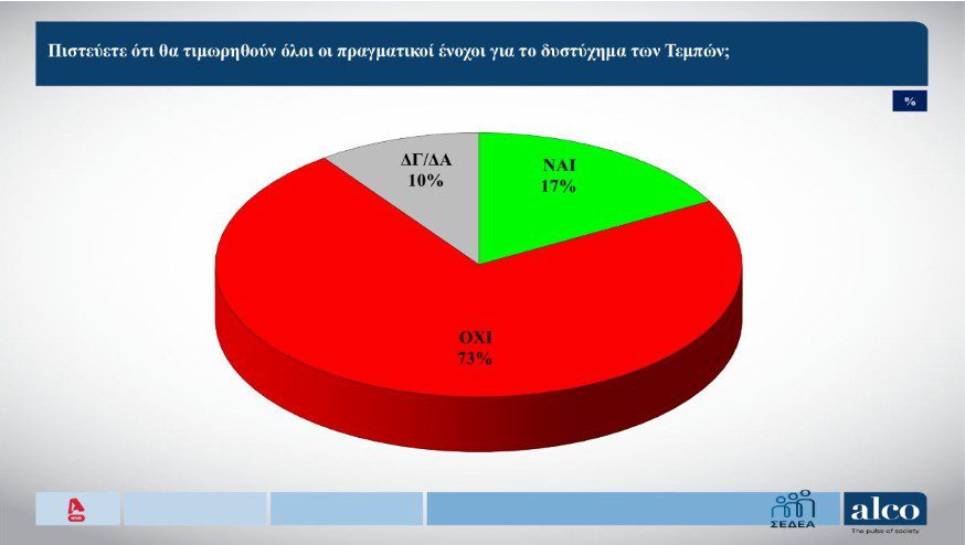 Επιπλέον, το 73% των ερωτηθέντων εκφράζει δυσπιστία ότι οι πραγματικοί υπαίτιοι θα αντιμετωπίσουν τις συνέπειες των πράξεών τους.