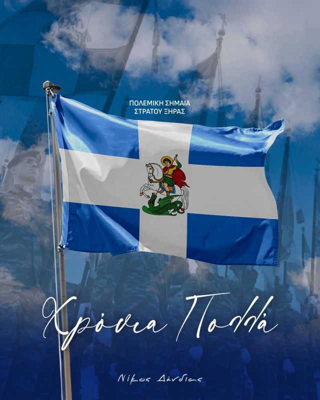 «Χρόνια πολλά στον Στρατό και το Πεζικό μας, για την εορτή του Προστάτη τους, Τροπαιοφόρου Αγίου Γεωργίου, όπως και σε όλες τις εορτάζουσες και τους εορτάζοντες».