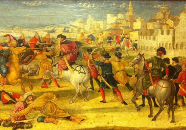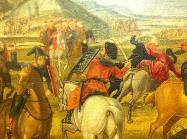 Ο πίνακας με τους Stratioti να μάχονται ονομάζεται il batalio de paralia και βρίσκεται στο Ίδρυμα Ωνάση.