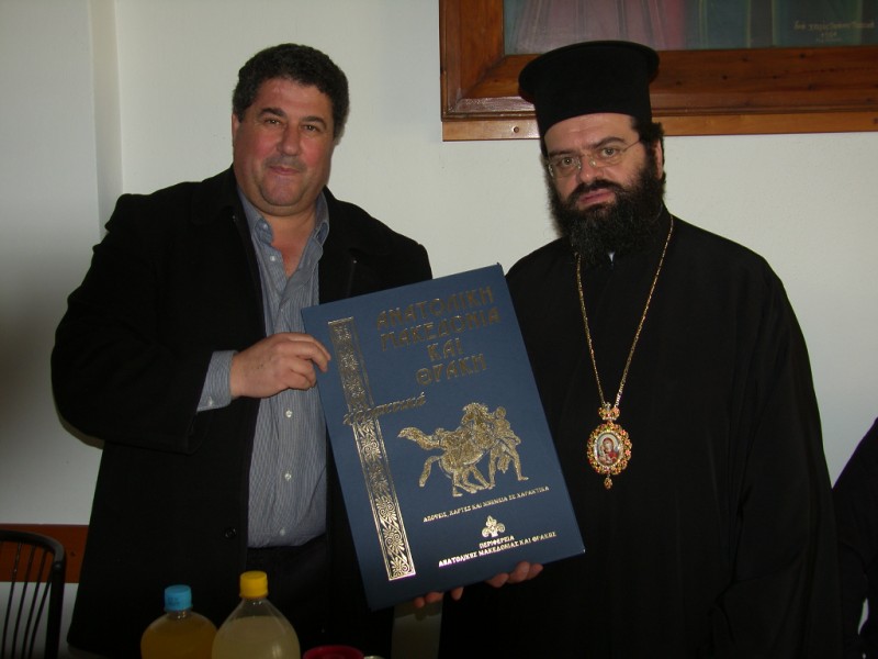Αντιφωνώντας ο Αντιδήμαρχος κ. Ζηλούδης, ευχαρίστησε τον Σεβασμιώτατο για την πρωτόγνωρη αυτή τιμητική προσφορά της τοπικής Εκκλησίας και σε ένδειξη ευγνωμοσύνης παρέδωσε χαρακτικά έργα της Περιφέρειας Ανατολικής Μακεδονίας και Θράκης, ενώ οι εργαζόμενοι ενδεικτικά εμβλήματα της εργασίας τους.