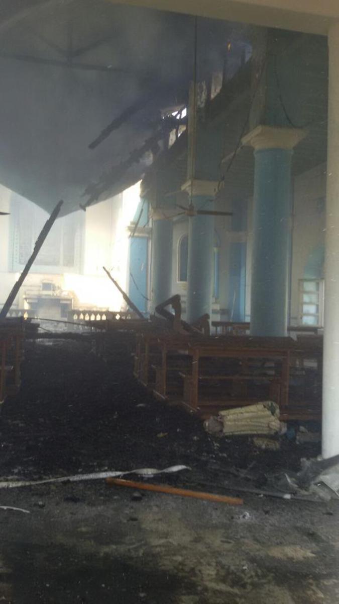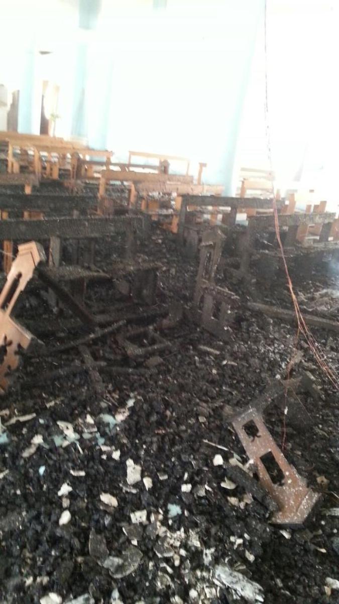 Η εκκλησία παραδόθηκε στις φλόγες μια ημέρα μετά τον βανδαλισμό της, πάλι από τζιχαντιστές.