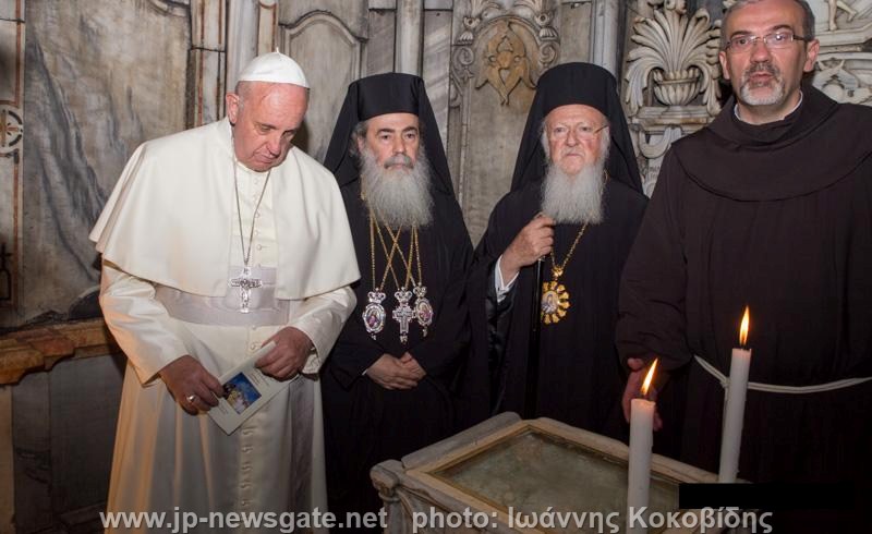 Ο Οικουμενικός Πατριάρχης Βαρθολομαίος και ο Πάπας Φραγκίσκος εξέφρασαν το απόγευμα της Δευτέρας την ευχή οι συνομιλίες τους, χθες και σήμερα, στα Ιεροσόλυμα να φέρουν στον διάλογο Ορθόδοξης και Ρωμαιοκαθολικής Εκκλησίας περισσότερους καρπούς πλήρους συμφωνίας σε δογματικά θέματα και σε ζητήματα εκκλησιαστικής ενότητας.