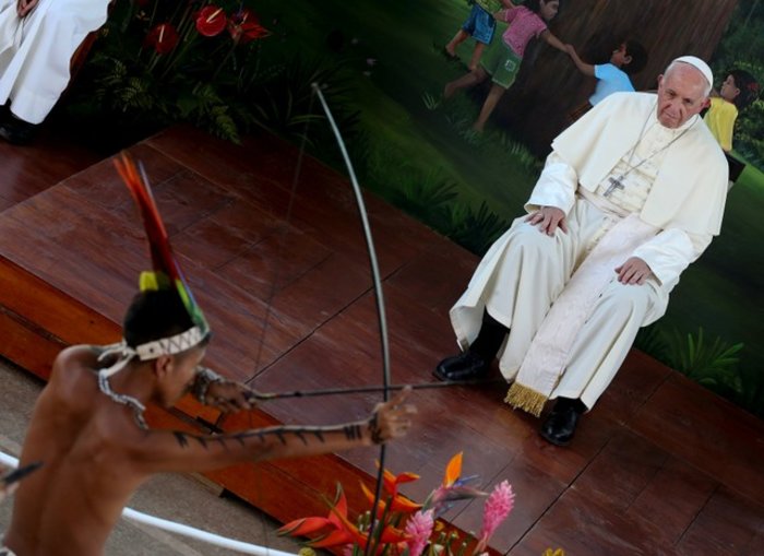 Ο πάπας, που έχει θέσει την προστασία του περιβάλλοντος και την αντιμετώπιση της κλιματικής αλλαγής ως προτεραιότητές του, είπε επίσης ότι δεν πρέπει να επιτραπεί στις μεγάλες επιχειρήσεις και την “καταναλωτική απληστία” να καταστρέψουν ένα φυσικό περιβάλλον που είναι ζωτικής σημασίας για ολόκληρο τον πλανήτη. “Οι ιθαγενείς του Αμαζονίου ουδέποτε απειλούνταν τόσο πολύ στα δικά τους εδάφη όσο σήμερα”, σημείωσε.