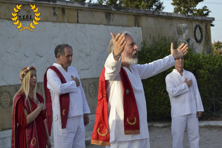 Σε μια σεμνή εκδήλωση που τίμησε τη Δημοκρατία και την Εθνική Ανεξαρτησία αλλά και συμβολικά είχε ολοφάνερα και το στοιχείο της κάθαρσης του χώρου από τις πρόσφατες ναζιστικές βεβηλώσεις, το ΥΣΕΕ απέδωσε τιμές, με τον εθνικό πατροπαράδοτο τρόπο, σε θεούς και προγόνους.