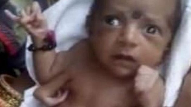 Ένα μωρό κορίτσι στην Ινδία που γεννήθηκε με τρία χέρια, λατρεύεται από τους χωρικούς για θεότητα.