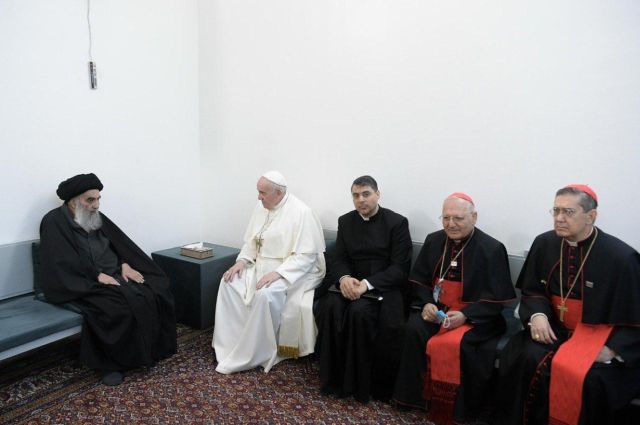 Ο Μεγάλος Αγιατολάχ, Αλί Σιστάνι, θρησκευτικός ηγέτης της πλειονότητας των σιιτών του Ιράκ, είπε στον πάπα Φραγκίσκο ότι οι χριστιανοί του Ιράκ πρέπει «να ζήσουν με ειρήνη και ασφάλεια» και να απολαμβάνουν «όλων των συνταγματικών δικαιωμάτων».