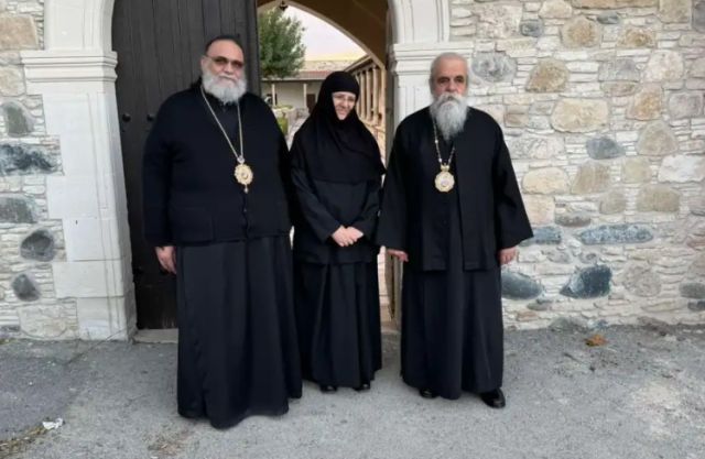 Με την άφιξη τους στη Μονή τους δύο Αρχιερείς με τις συνοδείες τους, υποδέχθηκε η Καθηγουμένη της Μονής, Γερόντισσα Προδρόμη, με αριθμό μοναζουσών και τους ξενάγησαν στους χώρους της Μονής με προσκύνημα στο Καθολικό αλλά και στην κατακόμβη, όπου ο χώρος της άσκησης και ο τάφος του Αγίου.