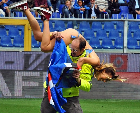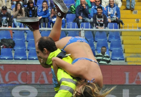 Η εισβολέας εισέβαλε στον αγωνιστικό χώρο, στην ήττα της ομάδας της από τη Νάπολι με το βαρύ 2 – 5.