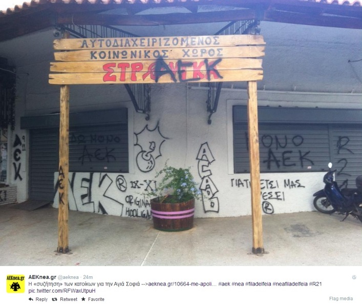 Άγρια επεισόδια το απόγευμα της Παρασκευής στη Νέα Φιλαδέλφεια όταν σύμφωνα με τα όσα διαβάζουμε στο twitter αλλά και στη διαδικτυακή εφημερίδα Κόντρα, οργανωμένοι οπαδοί της ΑΕΚ επιτέθηκαν σε κατοίκους της περιοχής που διαμαρτύρονταν για το νέο γήπεδο της ΑΕΚ.