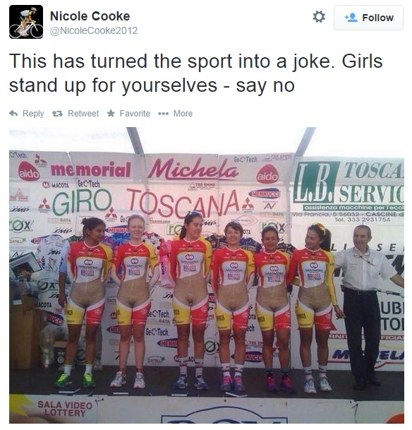 Η χρυσή Ολυμπιονίκης του 2008, Νικόλ Κουκ (Nicole Cooke), δήλωσε: «Αυτό μετατρέπει το άθλημα σε ένα παρατράγουδο. Κορίτσια, σταθείτε στο ύψος σας – Πείτε όχι!».