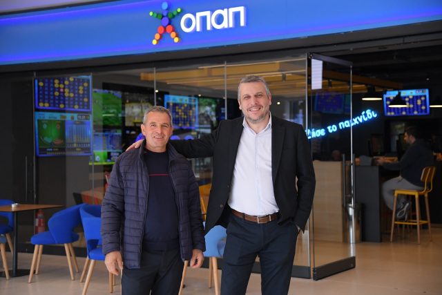 Η ομάδα του ΟΠΑΠ τον υποδέχθηκε στο κατάστημα ΟΠΑΠ στην OPAP Arena για να τον συγχαρεί και να του παραδώσει το μεγάλο δώρο.
