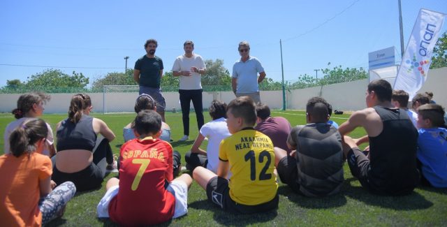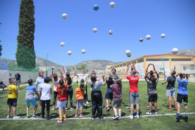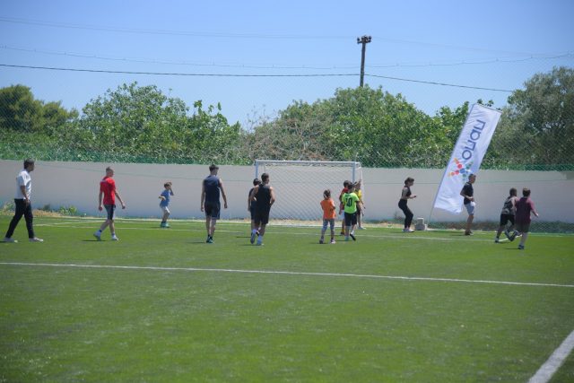 Το νέο υπαίθριο γήπεδο 5×5 εγκαινιάστηκε με μια μικρή ποδοσφαιρική γιορτή για τα παιδιά.