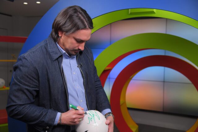 Ξεγλιστράει με μαεστρία από τις quick fire ερωτήσεις της Λίλας Κουντουριώτη και υπόσχεται να επιστρέψει στην εκπομπή για να χορέψει τάνγκο αν η ομάδα του ανέβει στη Super League 1.
