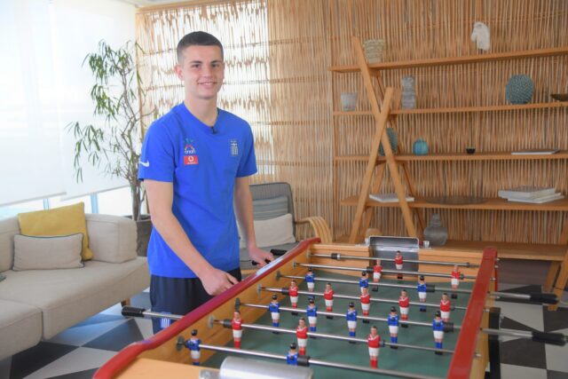Ο διεθνής παίκτης του Ολυμπιακού αποκαλύπτει το μεγάλο του όνειρο και παίζει ποδοσφαιράκι με τη Χριστίνα Βραχάλη.