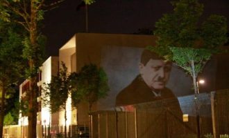 Εικόνες του Ταγίπ Ερντογάν και του Χίτλερ προέβαλε την περασμένη εβδομάδα στους τοίχους της τουρκικής πρεσβείας στο Βερολίνο, μέσω προτζέκτορα,…